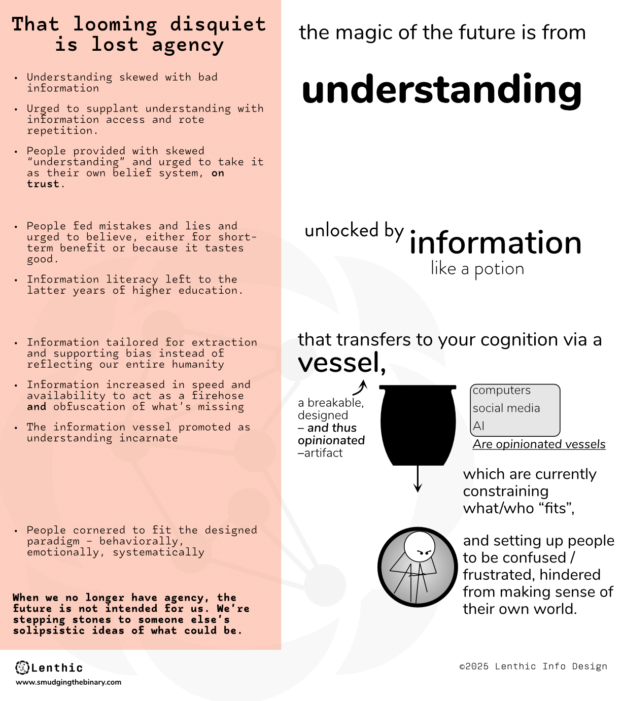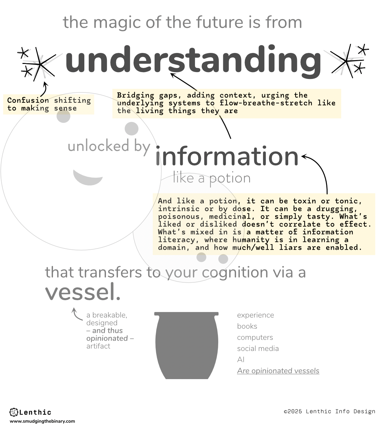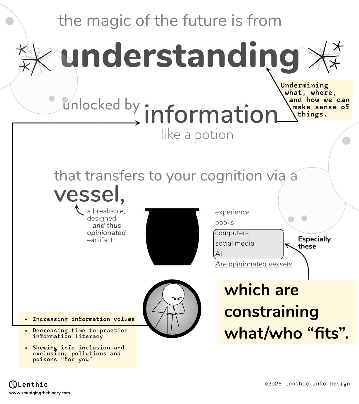 What we're seeing is information being poisoned at every level: at individual access and documentation, in the vessel, in the potion, and through to understanding and the future it creates.